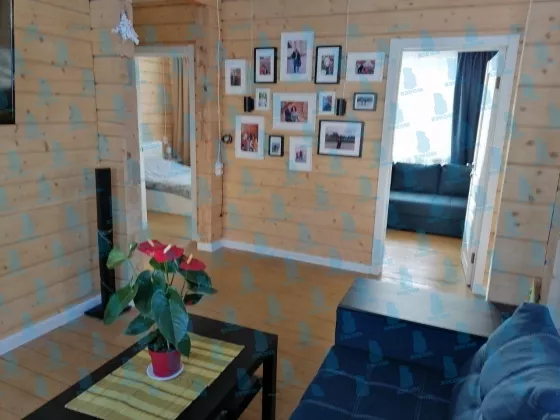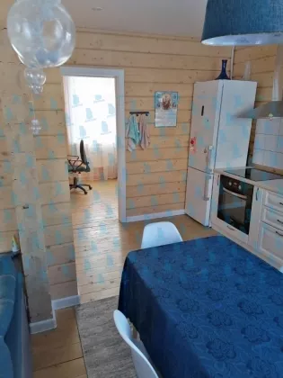 В черте города, по улице Дружина, продается отличный дом! Участок отсыпан песком и щебнем (не болотистый). Дом построен из клеёного бруса (сорт дерева: сосна/ ель. В брусе сосны 70%, изготовитель клееного бруса ВУД завод Киров), толщина наружных стен 24 см., утеплитель между брусом - специальный рулонный джут, специальным экологически чистым материалом -эковатой утеплены полы 30 см и потолок 20 см. Брус внутри отшлифован и покрыт тиккурилой для саун, снаружи торцевые обработаны от впитывания влаги с завода. Несущие каркасы дверей и окон имеют бегунки, межкомнатные двери на пене. Вся электрическая проводка исполнена в ретро формате, накладная. Максимальная потребляемая мощность электроэнергии в кВт (по договору поставки электроэнергии) 15 кВт 2 фазы. Установлен электрический котел -Миасовский ЭВПМ 12 модернизированный через магнитные пускатели. Отопление электрическое, по году ежемесячный платёж за электричество 5400 рублей. Имеется вытяжка на кухне и туалете. В доме установлена пожарная сигнализация. Водоснабжение не центральное. Греющие кабеля на водоснабжение и канализацию не установлены, это не безопасно. Дом общей площадью 64 кв. м., высокие потолки 2,7 м, удобная планировка. Фундамент из винтовых свай 12 м. Из-за усадки дома подшива крыши и отливы не смонтированы, материалы для отливов закуплены. Расцветка дома согласно проекту - белые торцы, отливы, естественный цвет бруса, цвет крыши зеленая мята. Есть септик: стоят кольца -колёса от погрузчика (больше кировских) 4 шт. Действующая, отапливаемая дровами баня с санузлом и душевой (баня исполнена из строительного вагончика с пристройкой каркаса, сама баня установлена на плитах перекрытия 6 м 3 штуки). Канализация с жилого здания и с бани стекает в разный септик. Также на участке есть место под большой гараж и беседку. Рядом: школа №1, Обдорская гимназия, ТЦ "Апельсин", магазин "Пятерка", аптеки.
